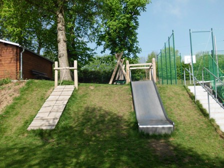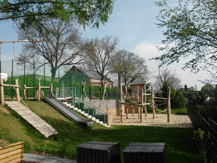 Ein Abenteuerkletterparcours, Fußballplatz, verschiedene Schaukeln, eine große Rutsche und Kletterwand bieten am Nachmittag zahlreiche Bewegungsmöglichkeiten.